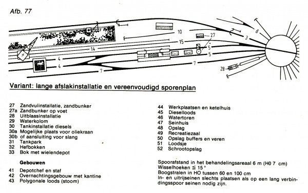 - Voor oliestook locomotieven een tankinstallatie. Het slakken verwijderen vervalt dan.