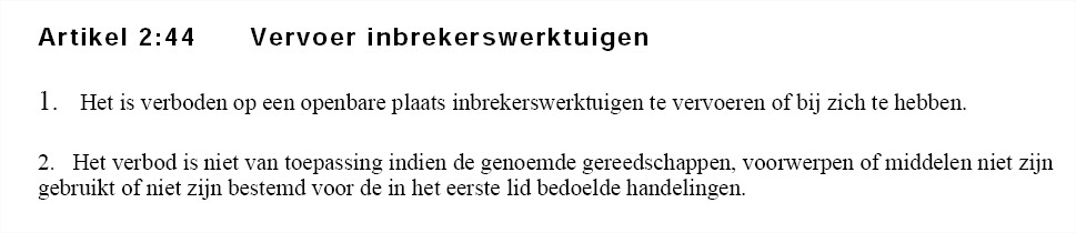 Artikel 2:44 Vervoer inbrekerswerktuigen