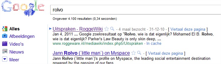 Op 20 januari 2011 toonde Google de uitspraak "Rolvo, wie is dat eigenlijk" als eerste hit.