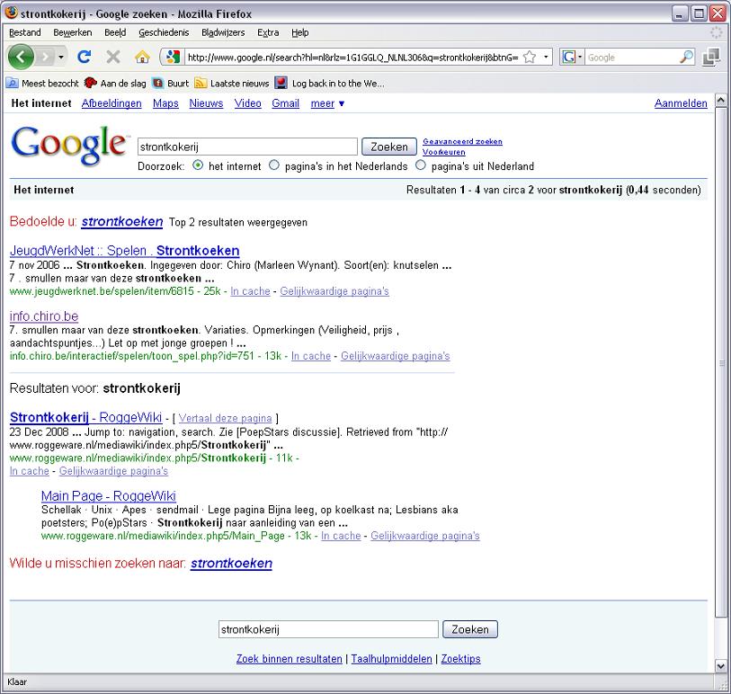 Google zoekresultaat op "strontkokerij".