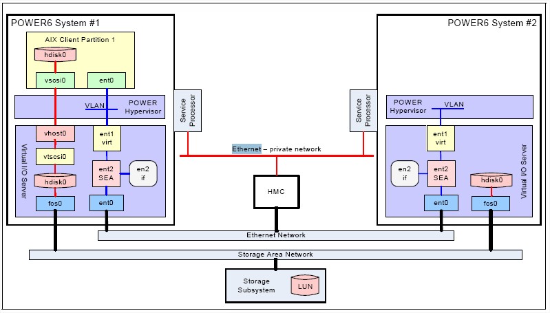 Source: Redbook sg24-7460-01 PowerVM Live Partition Mobility. Figure 1-1 Hardware infrastructure enabled for Live Partition Mobility