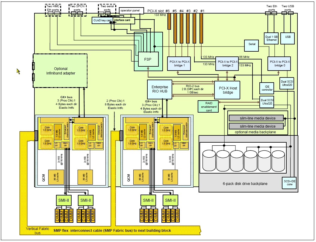 current00:14, 3 November 2010Thumbnail for version as of 00:14, 3 November 20101,055 × 806 (220 KB)Tom (talk | contribs)p5-560Q building block architecture shown with 1.5 GHz CPUs The bandwidths provided throughout are theoretical maximums used for reference. You should always obtain real-world performance measurements using production workloads. Source: redp-4139-00 IBM