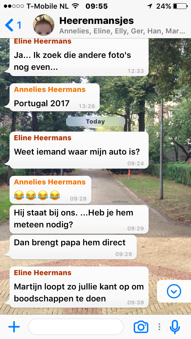 - (download) Eline Heermans SMS Weet iemand waar mijn auto is.PNG . . 640 × 1,136 . . 777 KB . . Tom . . 21:14, 18 January 2018